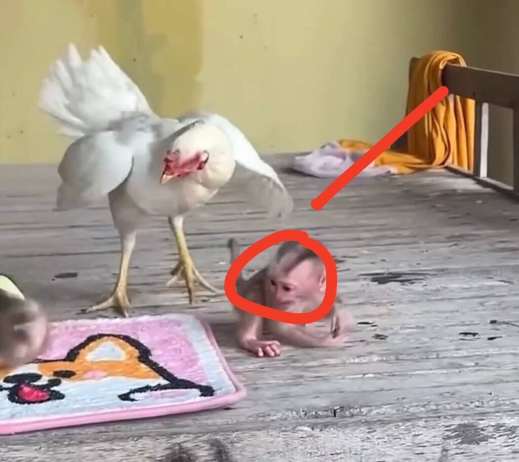 You Won’t Believe What Happens When a Baby Monkey Shares Food with a Chicken Monkey!